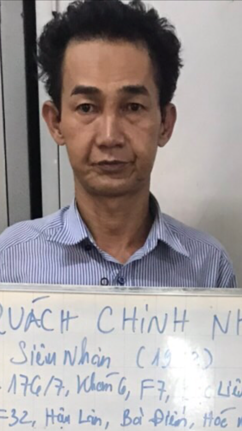Đến thời điểm này, các đối tượng đã bị bắt gồm: Quách Chinh Nhân (tự “Siêu nhân”, SN 1972, ngụ xã Bà Điểm, H.Hóc Môn), Bùi Văn Vinh (tự “râu Anh”, SN 1987, TT.Vĩnh An, H.Vĩnh Cửu, tỉnh Đồng Nai), Dương Thị Sen (tự “Gái vọng”, SN 1965, quê Q.Cẩm Lệ, TP.Đà Nẵng), Đỗ Thị Hạnh (SN 1942, quê Hải Phòng) và Trần Văn Điệp (SN 1983, ngụ P.Hiệp Bình Chánh, Q.Thủ Đức).