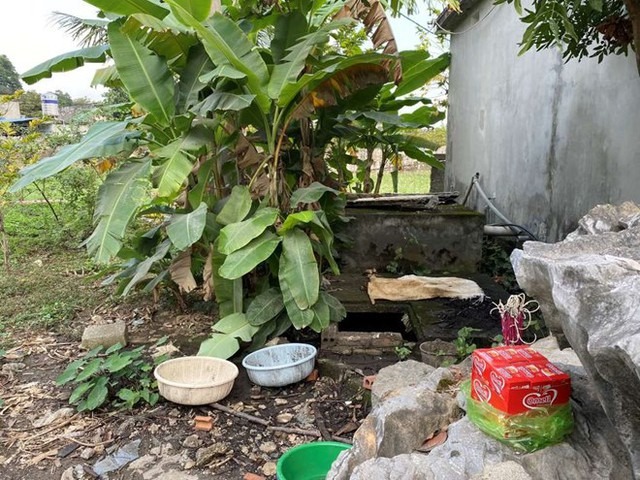 Bể nước này bỏ hoang đã lâu, nằm trong khuôn viên khu vườn rộng hàng trăm mét vuông không tường rào, cách biệt nơi sinh hoạt của gia đình ông Q.