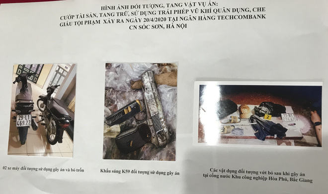 Khoảng 13h21 phút ngày 20/4, anh ta đi từ nơi ở tại Bắc Ninh bằng xe máy nhãn hiệu Yamaha Sirius màu đen, trắng mang BKS: 29L1- 469.22 và mang theo khẩu súng K59 với mục đích tìm ngân hàng có sơ hở để thực hiện hành vi cướp tài sản.