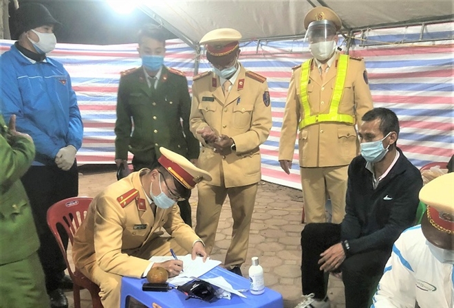 Trước đó, vào 21h30 ngày 29/1, trong quá trình thực hiện nhiệm vụ kiểm soát dịch bệnh Covid-19 tại chốt kiểm dịch số 2 (Km46+300) trên Quốc lộ 18 thuộc địa phận phường Hoàng Tiến, TP Chí Linh, tỉnh Hải Dương, tổ công tác của Phòng CSGT Công an tỉnh phát hiện một người đàn ông đi bộ đến gần chốt kiểm dịch có biểu hiện nghi vấn. Tổ công tác đã yêu cầu người này tiến hành kiểm tra thân nhiệt và khai báo y tế.
