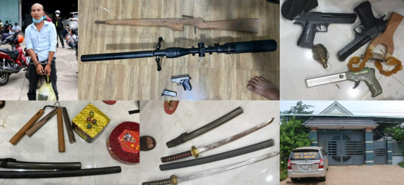 Tiến hành khám xét nơi ở của Đinh Văn Anh, cơ quan Cảnh sát điều tra phát hiện thu giữ nhiều hồ sơ đòi nợ, mua bán nợ, ủy quyền đòi nợ và nhiều hung khí nguy hiểm.