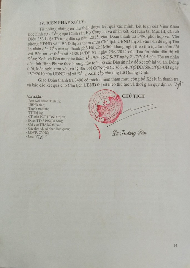 Theo TAND Cấp cao tại TP HCM, trong quá trình giải quyết vụ án, người bán đất (theo lời khai bị đơn C.) không thừa nhận có giao dịch với gia đình bị đơn C. Căn cứ lời khai đó, hai cấp tòa tuyên bố nguyên đơn thắng kiện. Sau đó, vì bức xúc kết quả xử án, gia đình ông C. chống đối quyết liệt việc thi hành án, ông C. tự sát sau khi gây thương tích cho nhiều người trong gia đình ông D. Thấy vụ tranh chấp dẫn đến hậu quả nghiêm trọng, hai bản án khiến người dân bức xúc nên chính quyền địa phương lập đoàn thanh tra xác minh lại nguồn gốc phần đất. Đặc biệt, đoàn thanh tra trưng cầu giám định chữ ký trong giấy tay mua bán đất mà bị đơn C. nộp tòa án trước đó. Kết quả giám định chứng minh lời khai của bị đơn C. về việc mua đất bằng giấy tay là sự thật. Chưa hết, cơ quan giám định phát hiện có người giả mạo chữ ký ông C. trong hồ sơ cấp giấy CNQSDĐ đối với diện tích đất ông D. mua rồi làm thủ tục sang tên sau này. Giấy CNQSDĐ này là căn cứ ông D. khởi kiện. Với chứng cứ không thể chối cãi, người bán đất cho bị đơn thừa nhận bản thân không trung thực.