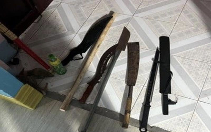 Tại thời điểm kiểm tra, cơ quan công an đã thu giữ 6 dao mã tấu và 1 gậy gỗ.
