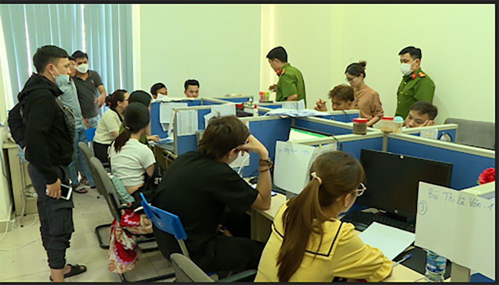 Khi công an ập vào, bên trong có khoảng 40 nhân viên đang làm việc, dùng điện thoại các loại khủng bố người dân khắp nơi nhằm đòi nợ.