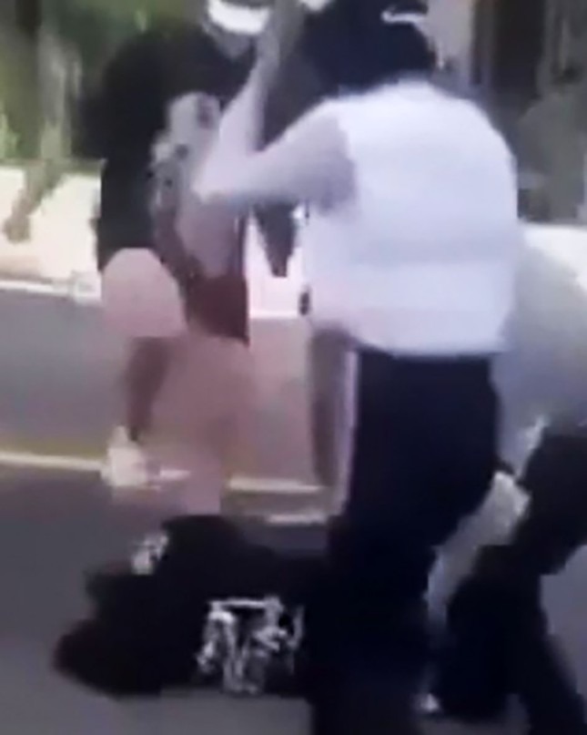 Từ hình ảnh trên clip 47 giây đăng trên mạng cho thấy, nhóm của Dung đã đánh hội đồng H. Trong đó A. được xác định là người dùng mũ bảo hiểm đánh H. Một số người khác dùng tay, chân đánh vào người H.