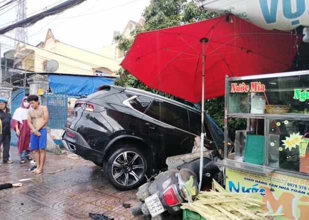 Ô tô này lao sang làn đường ngược lại rồi tông vào 2 xe máy. Xe này lao lên vỉa hè rồi tông một xe máy khác, tiếp tục lao vào sân một nhà dân.