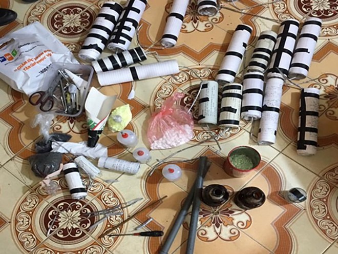 Khám xét chỗ ở của Nguyễn Văn Thái, lực lượng Công an thu giữ 19 quả pháo nổ, trọng lượng 6,743 kg và 0,266 kg thuốc pháo.