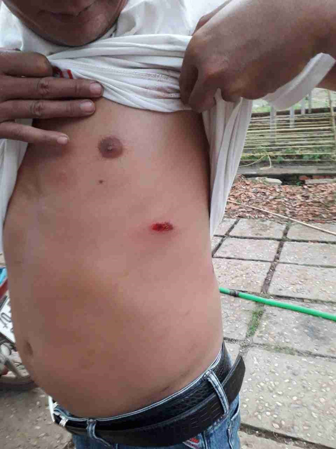Anh Tý bị bắn nhiều phát vào người gục tại chỗ. Vợ anh Tý che cho con cũng bị nhóm bắn trúng tay. Riêng người con trai 2 tháng tuổi bị nhóm bắn trúng đầu gây thương tích.
