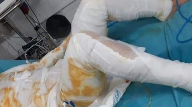 Đến đêm 23/8, do chẩn đoán ban đầu tình trạng bỏng của nạn nhân lên tới khoảng 90%, tiên lượng xấu nên bệnh viện tại Thái Bình đã đưa nạn nhân lên cấp cứu tại viện Bỏng Quốc gia.