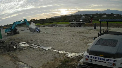 Chiều 1-3, tại khu vực lán trại công trường, Hoàng lái xe cuốc đập gàu múc nhiều cái vào xe tải của ông T. khiến đầu xe móp méo, biến dạng. Sau đó, Hoàng điều khiển xe cuốc đi tìm ông T. nhưng không thấy.