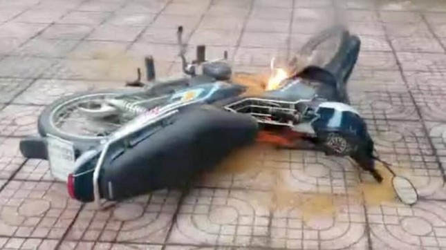 Phát hiện sự việc, tổ công tác đã cùng với người dân kịp thời dập lửa, tại hiện trường chiếc xe máy bị cháy phần nhựa gần lốc máy phía bên trái.
