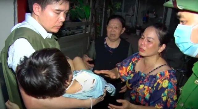 Lúc này, tổ công tác đã khống chế Nương và giải cứu thành công cháu bé, đồng thời nhanh chóng đưa cháu bé vào viện cấp cứu.