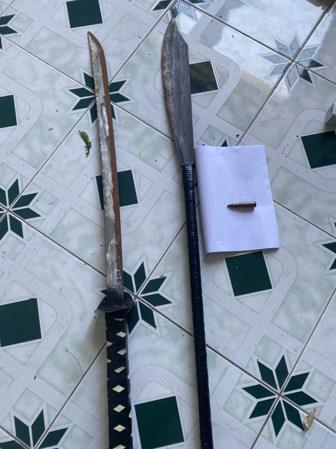 Khám xét nhà của Trung, cảnh sát phát hiện và thu giữ hai cây mã tấu và một viên đạn súng AK.