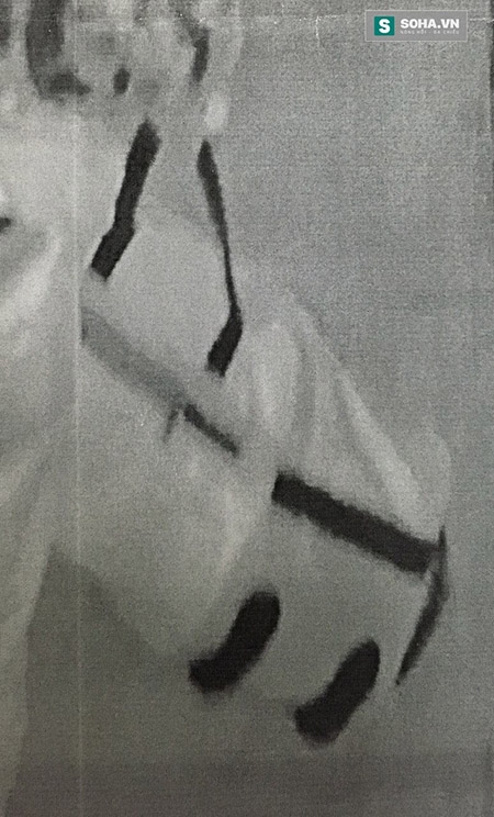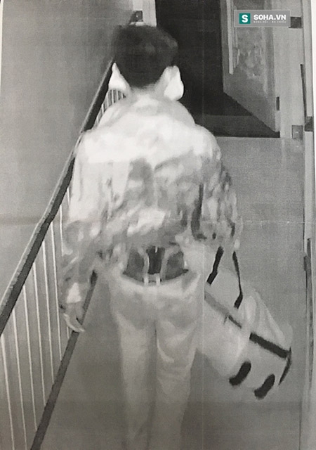 Nghi phạm cầm chiếc túi (tang vật vụ án) rời khỏi hiện trường |