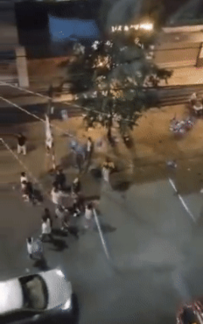 Theo hình ảnh từ đoạn clip một người dân khu vực ghi lại, thời điểm trên, 2 nhóm gồm hàng chục thanh niên xảy ra xô xát. Nhóm người cầm ghế, gậy lao vào ẩu đả, đuổi đánh nhau ngay trên đường. Khung cảnh hỗn loạn khiến nhiều người xunh quanh không khỏi hoảng sợ.