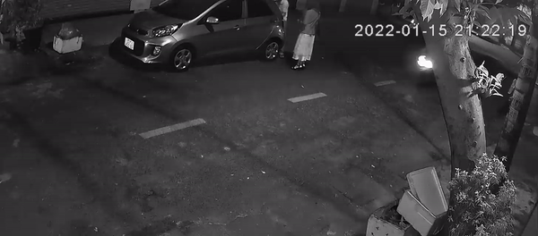 Theo nội dung đoạn clip cho thấy, người phụ nữ đang đứng trao đổi với một người đàn ông bên cạnh ô tô, còn xung quanh đường vắng bóng các phương tiện qua lại.