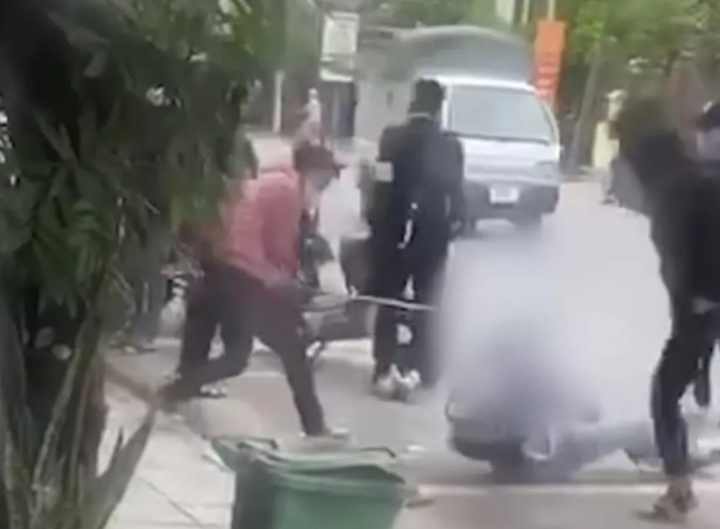 Trước đó, trên mạng xã hội lan truyền đoạn clip ghi lại cảnh một nam sinh bị một nhóm người vây đánh hội đồng bằng gậy ngay sát khu vực cổng trường, nằm gục tại chỗ.