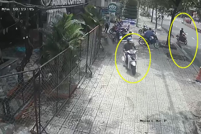 Thời điểm này, có 2 thanh niên đi xe máy tới gần cây ATM kế ngân hàng Vietinbank. Ông C. tiến tới hỏi chuyện thì một nam thanh niên trả lời là tới rút tiền để phân tán chú ý của người bảo vệ.