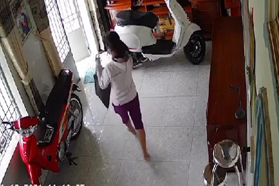 Theo hình ảnh từ camera ghi lại, khoảng 11h10 trưa 16.12, người giúp việc đã mở cửa đi từ phía cửa sau vào trong nhà. Khoảng 5 phút sau, bà này đi ra mang theo một bịch màu đen, bên trong được nhận định là con heo đất có giá trị khoảng 200 triệu đồng rồi nhanh chân bỏ trốn.