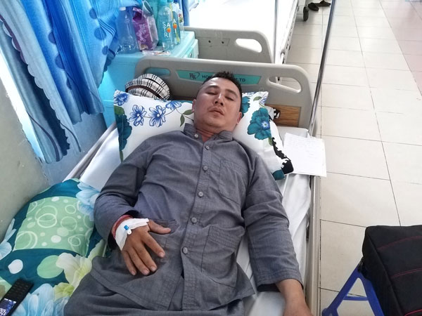 Tại bệnh viện quận Thủ Đức, nơi ông Phong đang nằm điều trị, nạn nhân cho biết ông bị đau khớp cổ không cử động đầu được, phần đầu cũng bị rách, chảy máu phải khâu năm, sáu mũi. Giờ đêm nào cũng ho suốt đêm vì thanh quản có vấn đề, cơ thể đau nhức, mỏi mệt.