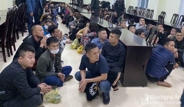 Được biết, các con bạc tham gia trong đường dây này đến từ Nghệ An, Hà Tĩnh, Thanh Hóa và một số tỉnh lân cận. Quá trình đột kích, cơ quan công an đã tiến hành bắt giữ và lập biên bản phạm tội quả tang đối với 101 đối tượng đang có hành vi tổ chức đánh bạc và đánh bạc.