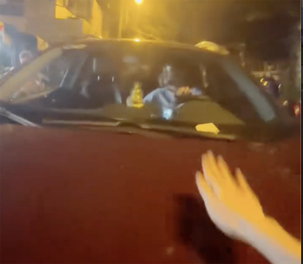 Đức tiếp tục xuống xe chửi bới. Người bạn của chị V. dắt xe máy vào sát lề đường. Tài xế lên ô tô định tiếp tục di chuyển nhưng chị V. vì bức xúc, có đứng trước đầu xe, yêu cầu Đức không di chuyển và mời công an đến giải quyết. Lúc này, chị V. có cầm điện thoại quay lại diễn biến vụ việc.