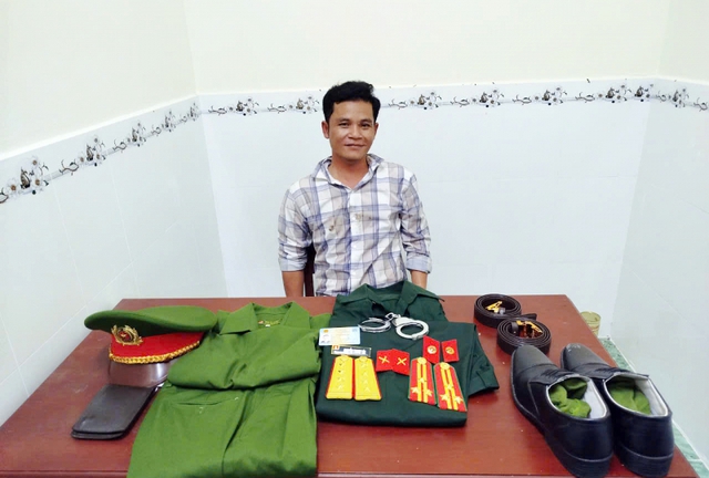 Qua điều tra, công an thu giữ tang vật gồm: 1 bộ trang phục công an nhân dân, 11 cặp quân hàm thượng tá công an, 11 bộ trang phục quân đội, 1 cặp quân hàm đại úy quân đội, 11 khóa số 8…