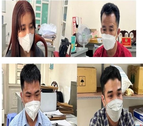 Những người bị bắt khẩn cấp gồm: Phan Thị Kim Huệ (tự Nhi), sinh năm 1997, quê tỉnh Phú Yên; Bùi Văn Hữu, sinh năm 1980, quê tỉnh Bình Phước; Trần Danh Tường, sinh năm 1997, quê tỉnh Bình Thuận và Nguyễn Văn Sơn, sinh năm 1995, ngụ tỉnh Đồng Nai.