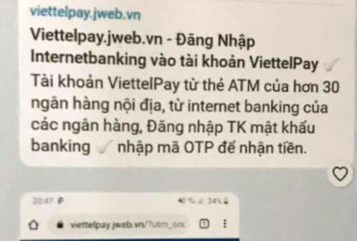 Cụ thể, bằng thủ đoạn đề nghị giúp đỡ những người có hoàn cảnh khó khăn, người dân được chỉ dẫn cần truy cập vào đường dẫn Viettelpay.jweb.vn sẽ nhận được tiền ủng hộ.