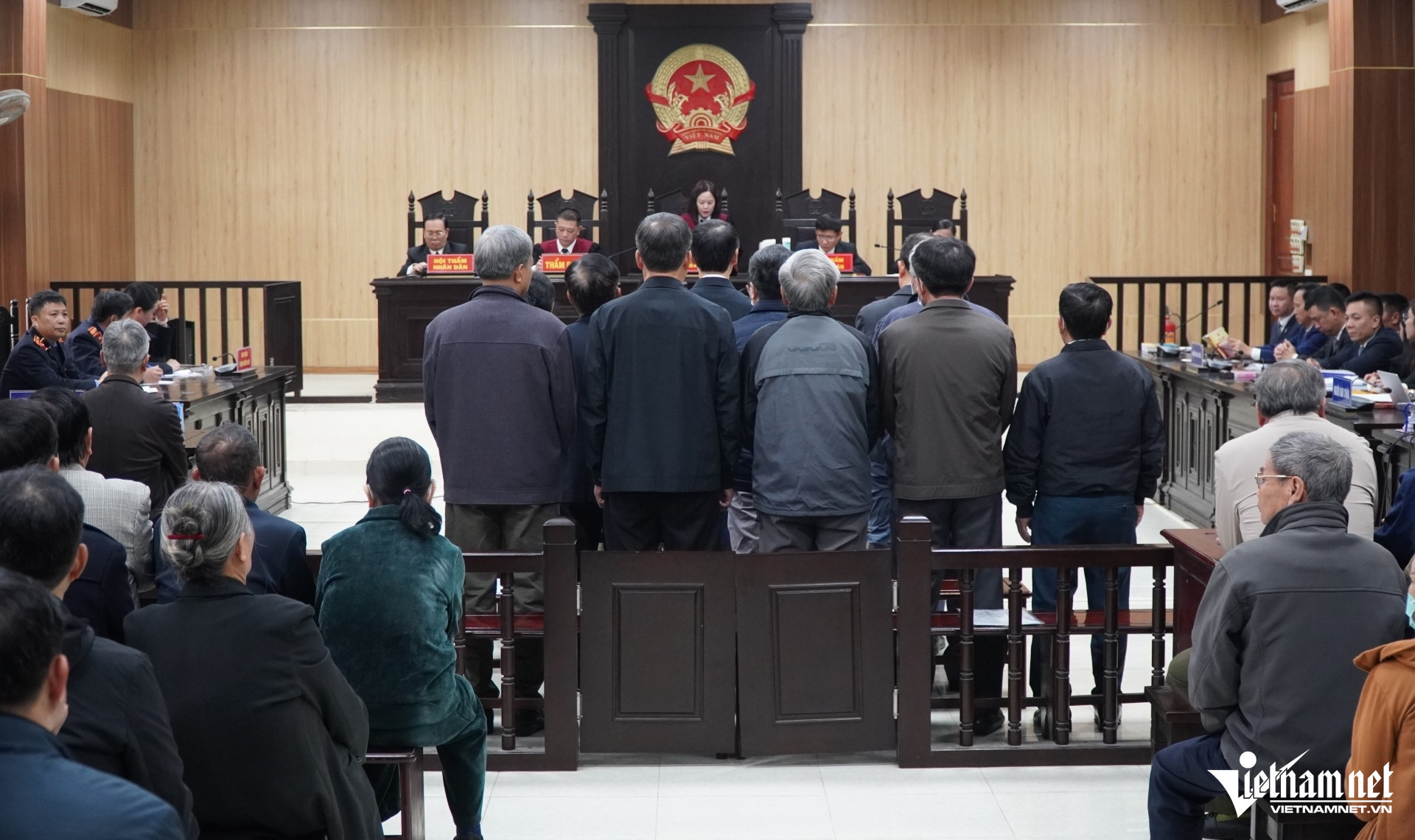 8h sáng, các bị cáo có mặt tại tòa đầy đủ, gồm: Trịnh Văn Chiến (SN 1960), cựu Bí thư Tỉnh ủy; Nguyễn Đình Xứng (SN 1962), cựu Chủ tịch UBND tỉnh; Cù Đình Hiền (SN 1954), cựu Phó chánh Văn phòng UBND tỉnh; Bùi Văn Nam (SN 1969), cựu Phó trưởng Phòng kinh tế tài chính thuộc Văn phòng UBND tỉnh; Đinh Cẩm Vân (SN 1965), cựu Giám đốc Sở Tài chính; Nguyễn Bá Hùng (SN 1966) và Ngô Đình Chén (SN 1956), cựu Phó giám đốc Sở Tài chính; Văn Xuân Hùng (SN 1959), cựu Trưởng phòng quản lý Công sản - Giá cả Sở Tài chính; Trần Công Tỏ (SN 1956), cựu Trưởng phòng tài chính doanh nghiệp Sở Tài chính; Đinh Xuân Hướng (SN 1970), cựu Tổng giám đốc Công ty TNHH MTV Sông Mã; Nguyễn Mạnh Sơn (SN 1958), cựu Chủ tịch hội đồng thành viên Công ty TNHH MTV Sông Mã.