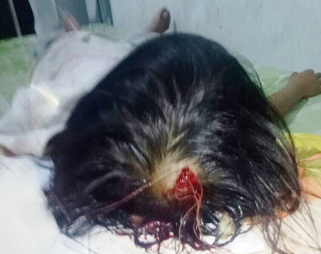 Nghiêm trọng hơn, Bình lấy thanh sắt dùng để gài cửa dài trên 70cm đánh trúng đỉnh đầu bé gái. "Lúc bé gái đi ra hàng tạp hóa mua đồ, thấy trên mặt cháu bầm tím, máu me, mọi người mới biết sự việc. Ngay trong đêm ấy, chính quyền địa phương làm việc với Bình", ông Nguyễn Minh Đoàn (Phó ấp So Đũa Bé, kiêm công an xã) cho biết,