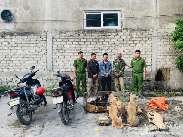 Ngày 14/10, Công an phường Quỳnh Thiện (thị xã Hoàng Mai, Nghệ An) cho biết, đã bắt quả tang Lê Đình Danh (SN 1968), Lê Vũ Tiến (SN 1975), Lê Công Dũng (SN 1991) cùng trú ở ở phường Hải Ninh, Nghi Sơn (Thanh Hóa) về hành vi câu trộm chó.