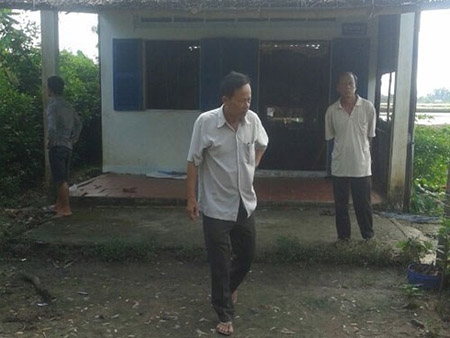 Căn nhà của anh Minh và khoảng sân nạn nhân bị đàn em của Liêm đâm gục tại chỗ |
