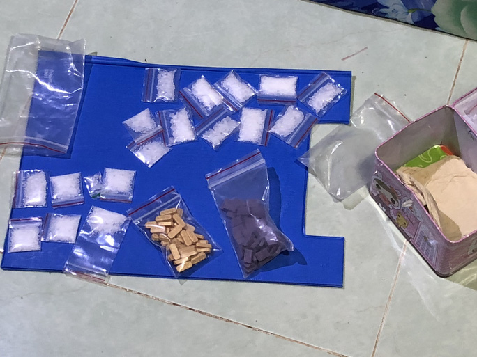 Khánh khai nhận số tang vật trên là ma túy tổng hợp. Tiếp tục kiểm tra, đã tạm giữ thêm 1 mã tấu. Qua test nhanh, Khánh dương tính với ma túy.