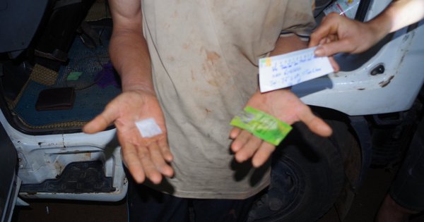 Nghi vấn tài xế có biểu hiện sử dụng trái phép chất ma túy, tổ tuần tra kiểm soát yêu cầu kiểm tra toàn bộ khung cabin xe thì phát hiện phía dưới ghế tài xế có 1 ví da bên trong chứa 1 gói nylon hàn kín đựng tinh thể màu trắng (nghi là ma túy đá tổng hợp).