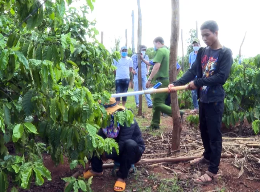 Đến khoảng 22 giờ cùng ngày, Giang tỉnh dậy đi bộ quay lại nhà vợ. Khi đi qua rẫy nhà chị T.T.H (SN 1976, trú huyện Chư Pưh) thì thấy chị này đang một mình tưới cà phê nên Giang nhặt một khúc cây, đánh nhiều cái vào sau đầu, mặt chị H.