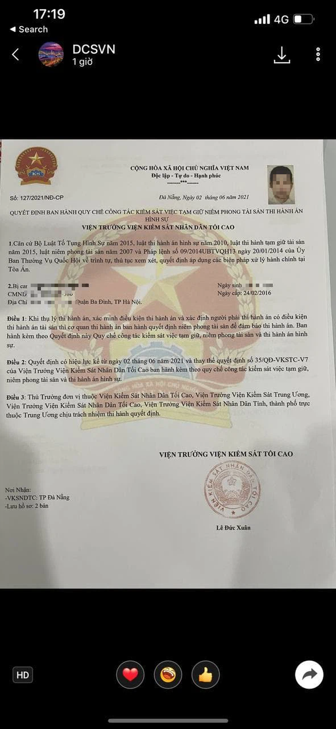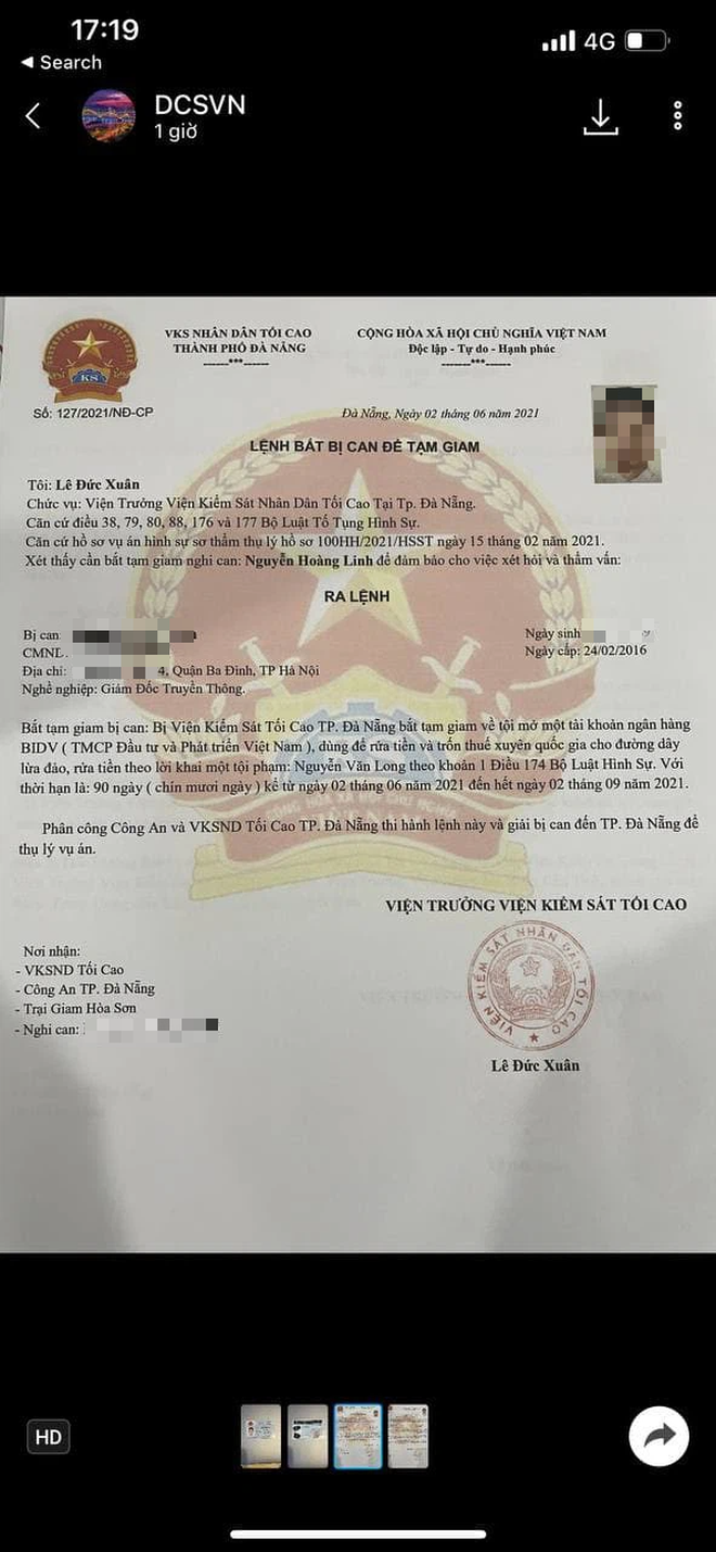 Anh L. gửi hình ảnh chứng minh thư cá nhân cho các đối tượng lừa đảo trên Zalo. Để tiếp tục đe dọa anh L., các đối tượng này còn gửi hình ảnh về "Quyết định ban hành quy chế công tác kiểm sát việc tạm giữ niêm phong tài sản thi hành án hình sự" và "Lệnh bắt bị can để tạm giam" của VKSND tối cao TP. Đà Nẵng. Trong các giấy tờ này đều có đầy đủ hình ảnh, thông tin cá nhân của anh L.