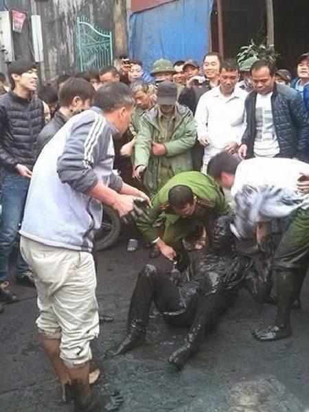 Chỉ đến khi lực lượng công an tới thì vụ việc mới được giải quyết. Thanh niên "ngáo đá" kia đã bị đưa lên mặt đất trong tình trạng người bị nhuộm đen bởi bùn đất.