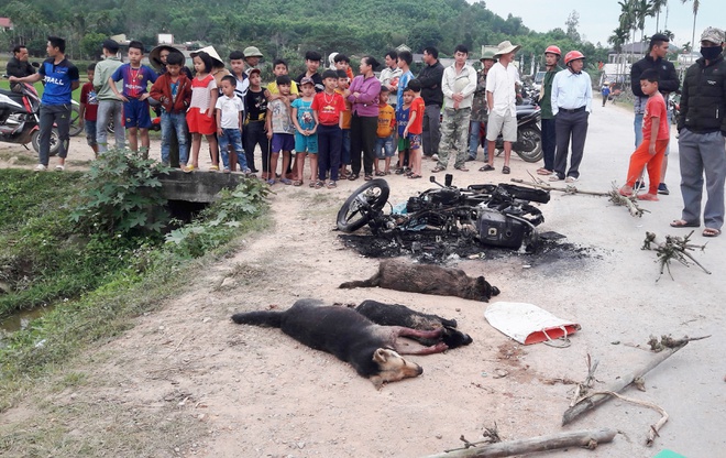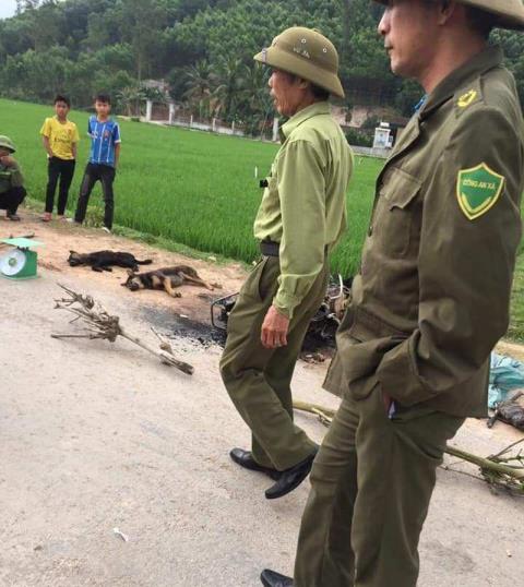 Nhận được tin báo, chính quyền địa phương đến hiện trường thì phát hiện 2 thanh niên nằm bất tỉnh, cạnh đó là chiếc xe máy bị đốt cháy cùng 3 con chó, 1 bộ kích điện. Cả hai sau đó được đưa lên bệnh viện huyện cấp cứu.