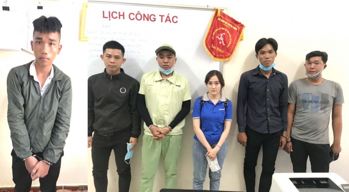 Danh tính các nghi can tạm giữ gồm: Huỳnh Bùi Khan (24 tuổi, ngụ TP.HCM) Trần Hữu Thịnh (17 tuổi), Trần Minh Tuấn (32 tuổi), Trần Văn Dự (23 tuổi), Lê Quốc Duy (23 tuổi) và Phạm Thị Nhựt Quyên (27 tuổi).