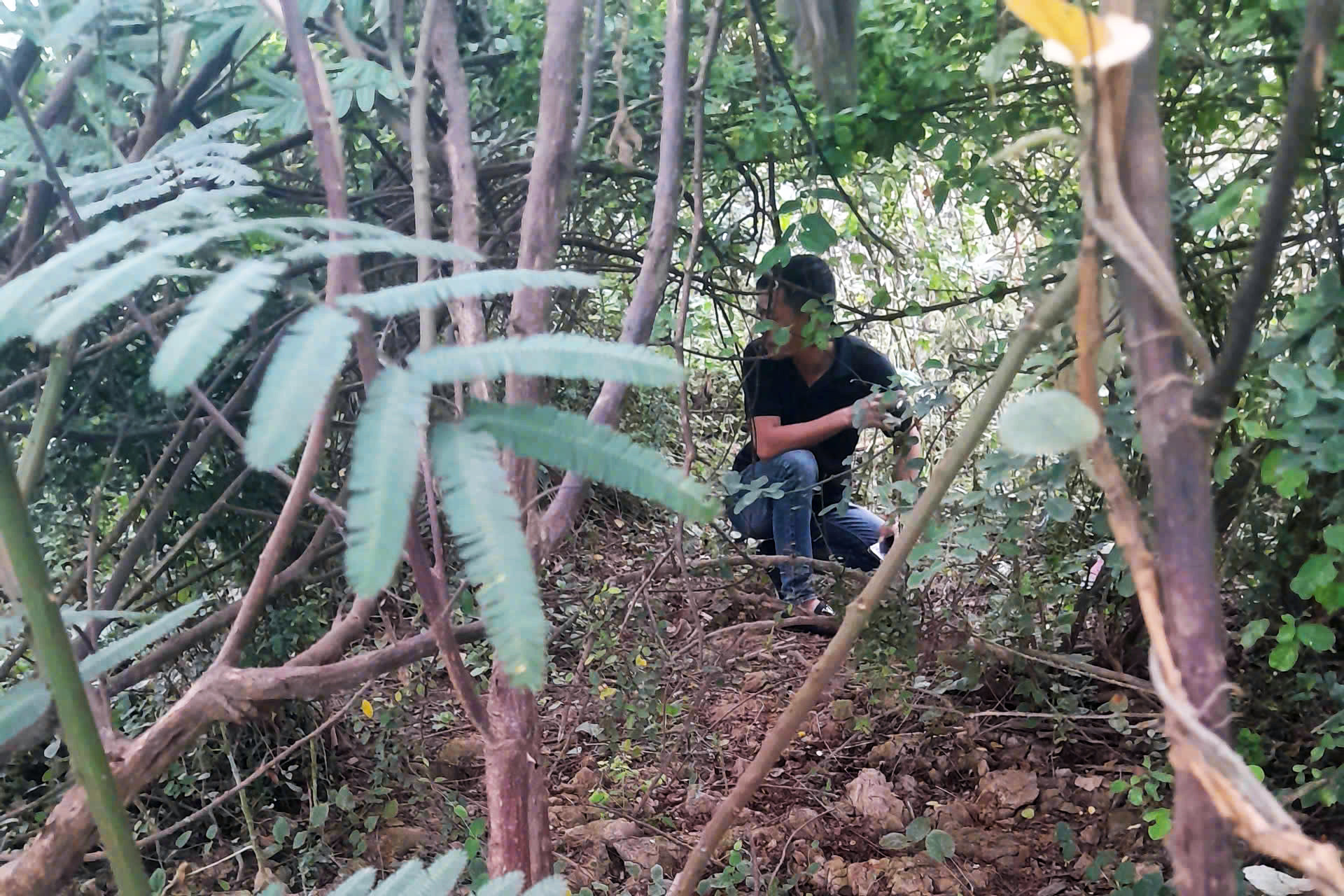 Tại khu vực này, nghi phạm Vũ Văn Lịch cũng giấu xe máy bên trong bụi rậm để tránh công an phát hiện.