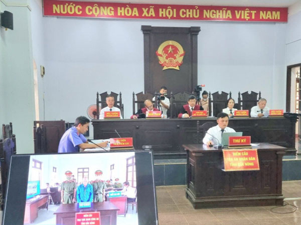 Phiên tòa được xét xử trực tuyến tại điểm cầu trại giam công an tỉnh và TAND tỉnh.