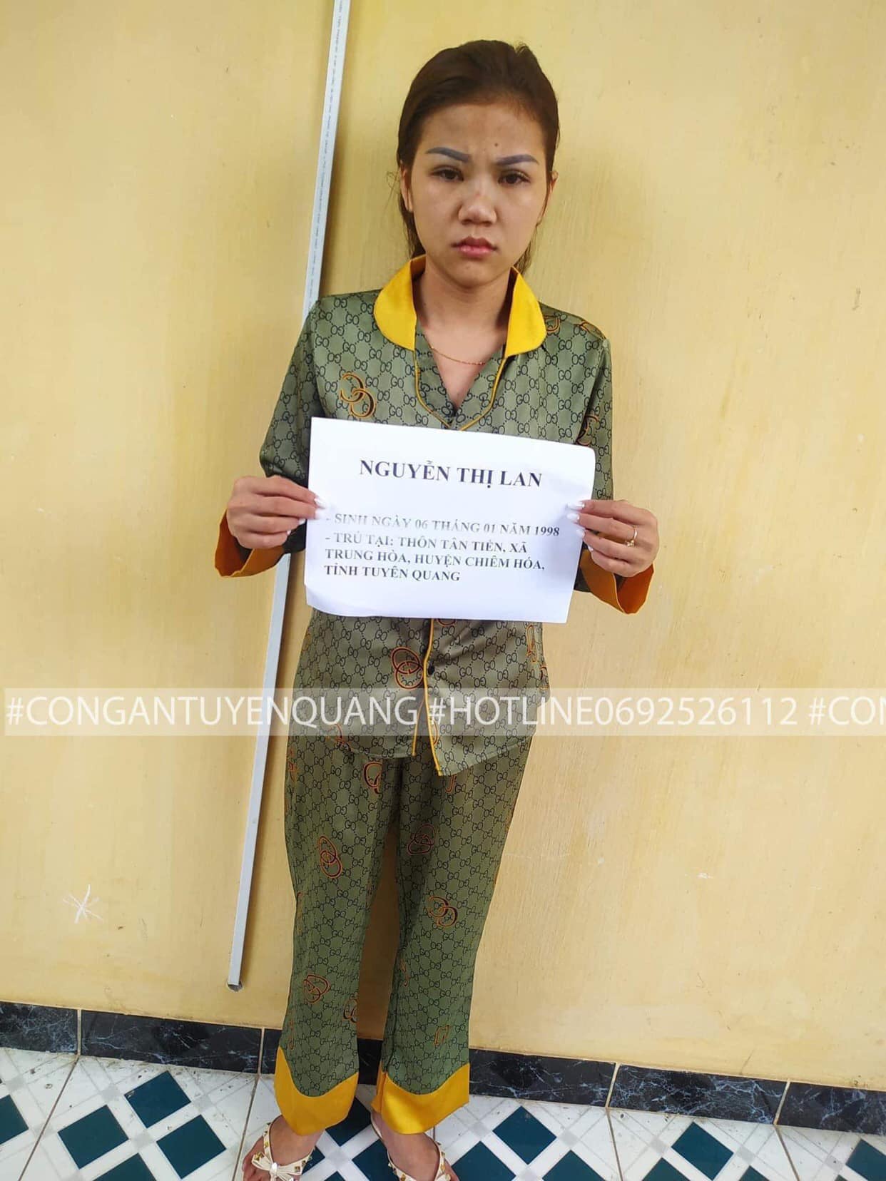 Tại thời điểm kiểm tra hành chính khách sạn Vân Anh thuộc tổ 9, phường Phan Thiết, TP.Tuyên Quang, tỉnh Tuyên Quang, cảnh sát bắt giữ Nguyễn Thị Lan cùng 3 đối tượng đang thực hiện hành vi bán dâm.