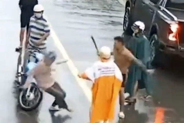 Khi các bên đang tiếp tục cự cãi, giằng co nhau trên đường, Trung xuống xe, xông tới đạp vào ngực chị L.T.T.N và cầm dao đuổi đánh chị Xoan.