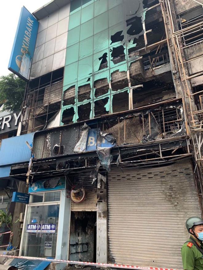 Qua khám nghiệm, công an xác định diện tích bị cháy là 16m2, làm hư hỏng toàn bộ biển hiệu, biển quảng cáo phía trước mặt tiền Ngân hàng Eximbank, cửa hàng đệm và một số giấy tờ, chứng từ tại lầu 3 của ngân hàng.