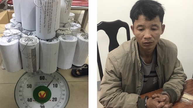 Vào hồi 12h ngày 5/2, Công an xã Hưng Lộc đã bắt quả tang đối tượng Trần Văn Huấn (SN1974, trú tại xóm Hòa Tiến, xã Hưng Lộc, thành phố Vinh, Nghệ An) về hành vi sản xuất hàng cấm. Lực lượng Công an thu giữ trong nhà ở của đối tượng gồm 30 quả pháo nổ (pháo đại), 60 quả pháo nhỏ, 1 dây pháo gồm 60 quả pháo nhỏ, thuốc pháo, với tổng trọng lượng 9kg và nhiều dụng cụ để chế tạo, sản xuất trái phép pháo nổ.