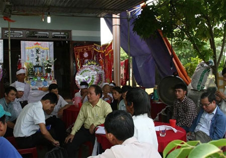 Đông đảo người dân đến chia buồn với gia đình trước cái chết của ông Bản. |