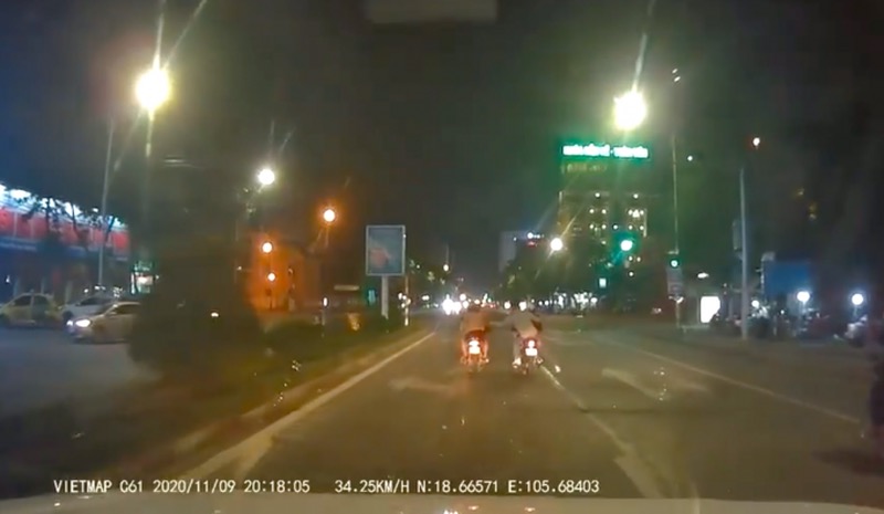 Sự việc xảy ra quá bất ngờ khiến 2 người phụ nữ loạng choạng trên xe máy rồi ngã xuống đường.