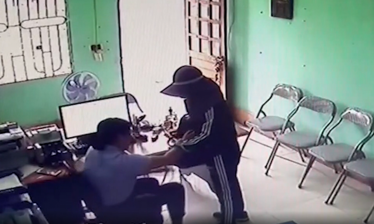 Nữ nhân viên sau đó giằng co, đẩy Hòa lùi vào tường rồi chạy thoát ra ngoài. Toàn bộ sự việc được camera an ninh trong phòng làm việc ghi lại. Lực lượng chức năng cùng người dân sau đó đã khống chế Hòa.