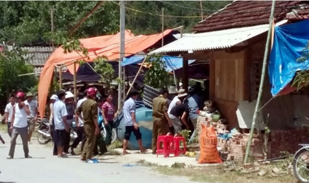 Người dân bản Vẽ đổ về căn nhà chị V. sau khi nghe tiếng la hét thất thanh. Ai nấy rùng minh khi chứng kiến hiện trường vụ án mạng kinh hoàng. |
